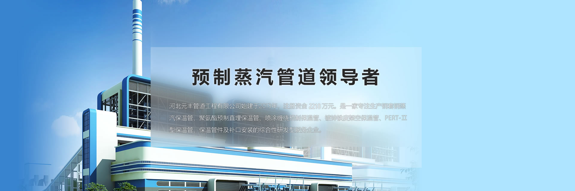 公司在河北、內(nèi)蒙、天津、遼寧均有生產(chǎn)基地,總占地面積500余畝。公司產(chǎn)品覆蓋中國以及蒙古、俄羅斯、中東、南非等20 多個國家和地區(qū),產(chǎn)品主要應(yīng)用于高溫蒸汽輸送、集中供熱、集中供冷等。
